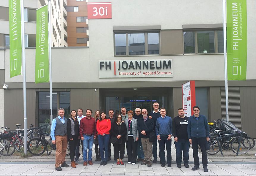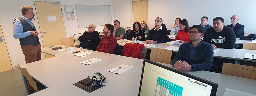 Na poziv prof.dr. Georga Wagnera, voditelja instituta primijenjenih znanosti FH Jaonneuma u Grazu, Hrvatska zajednica inovatora organizirala je jednodnevnu studijsku posjetu ovoj uglednoj visokoškolskoj instituciji u okviru programa poticanja međunarodnih aktivnosti hrvatske akademske zajednice. Cilj posjete bio je upoznati se sa specifičnostima austrijskog visokoškolskog obrazovnog sustava s naglaskom na dualno obrazovanje u kojem FH Joanneum prednjači u svakom pogledu.