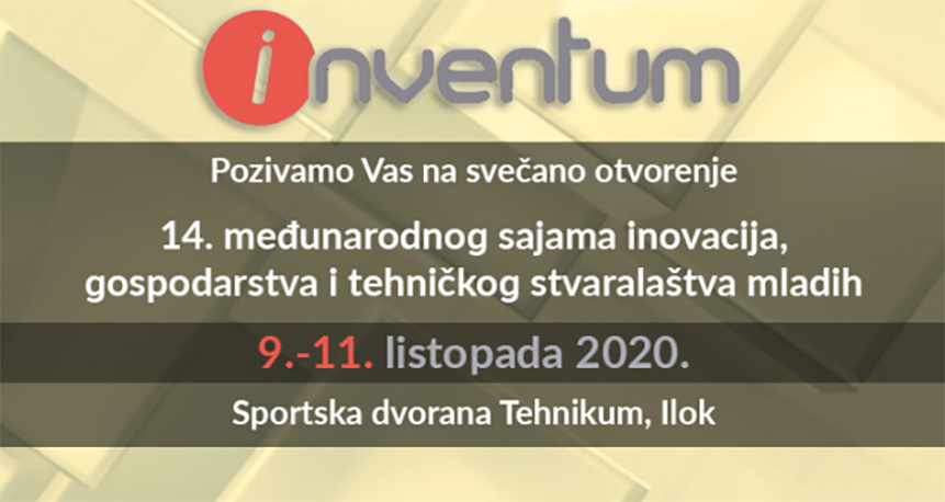 Udruga inovatora „Tesla“ Ilok, poziva vas da nam se pridružite u Iloku od 9. do 11. listopada, na nadolazećem INVENTUMU 14. međunarodnom sajmu inovacija, gospodarstva i tehničkog stvaralaštva mladih jedinstvenoj manifestaciji u ovom dijelu Hrvatske.