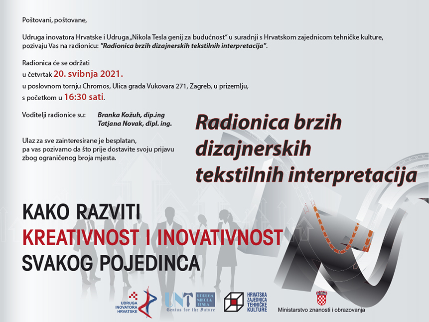 Najava edukativne radionice - Kako razviti kreativnost i inovativnost svakog pojedinca – inspirirani Nikolom Teslom - „Radionica brzih dizajnerskih tekstilnih interpretacija“