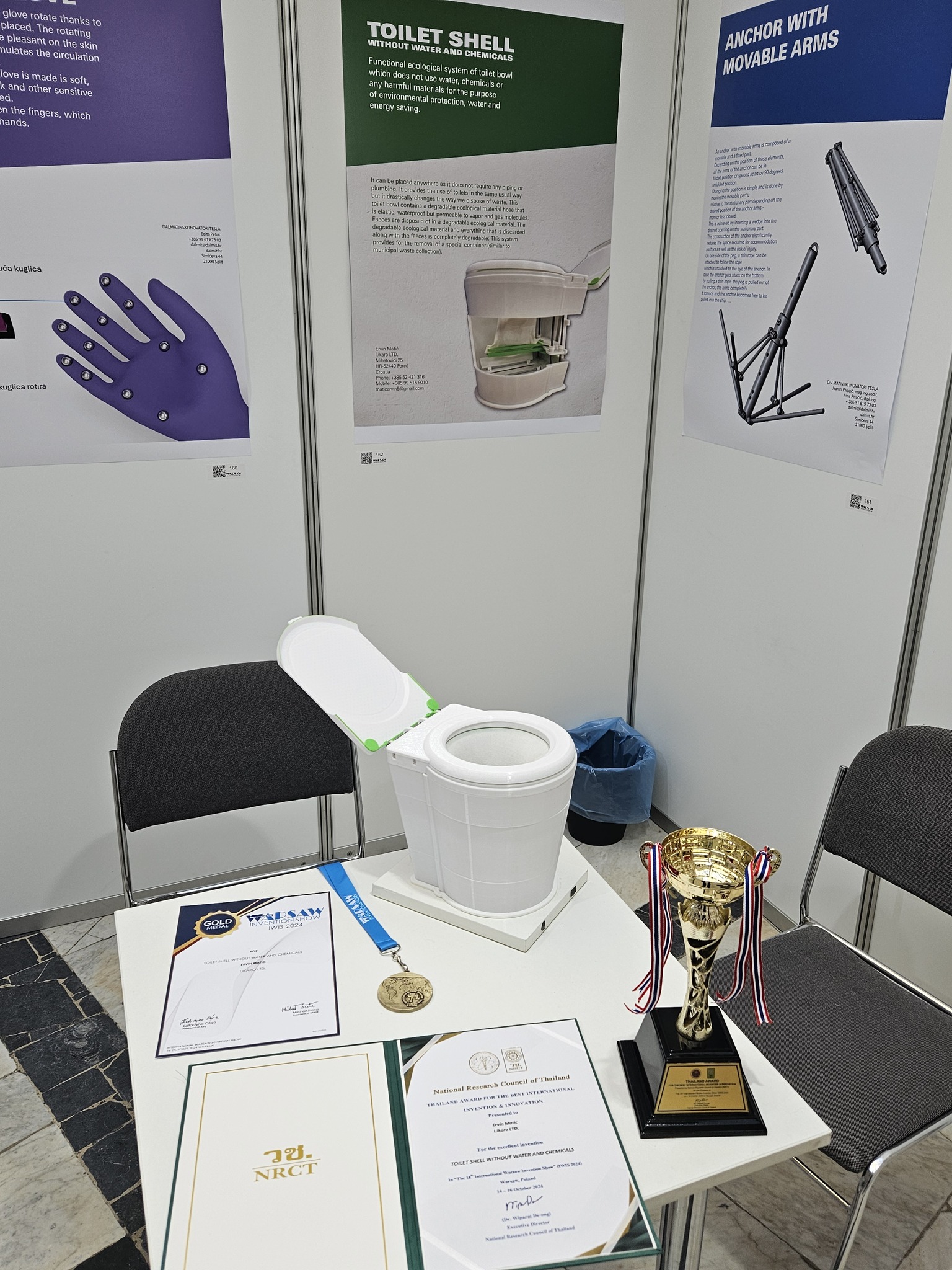 Dvije zlatne medalje osvojile su inovacije „Drveni vodonepropusni umivaonik“ tvrtke Egorra d.o.o. te ekološka inovacija „WC školjka bez vode i kemikalija“ inovatora iz Pule Ervina Matića. Ista je inovacija imala veliko zanimanje i stranih gostiju sajma te je također nagrađena i posebnom nagradom Nacionalnog istraživačkog vijeća Thailanda.