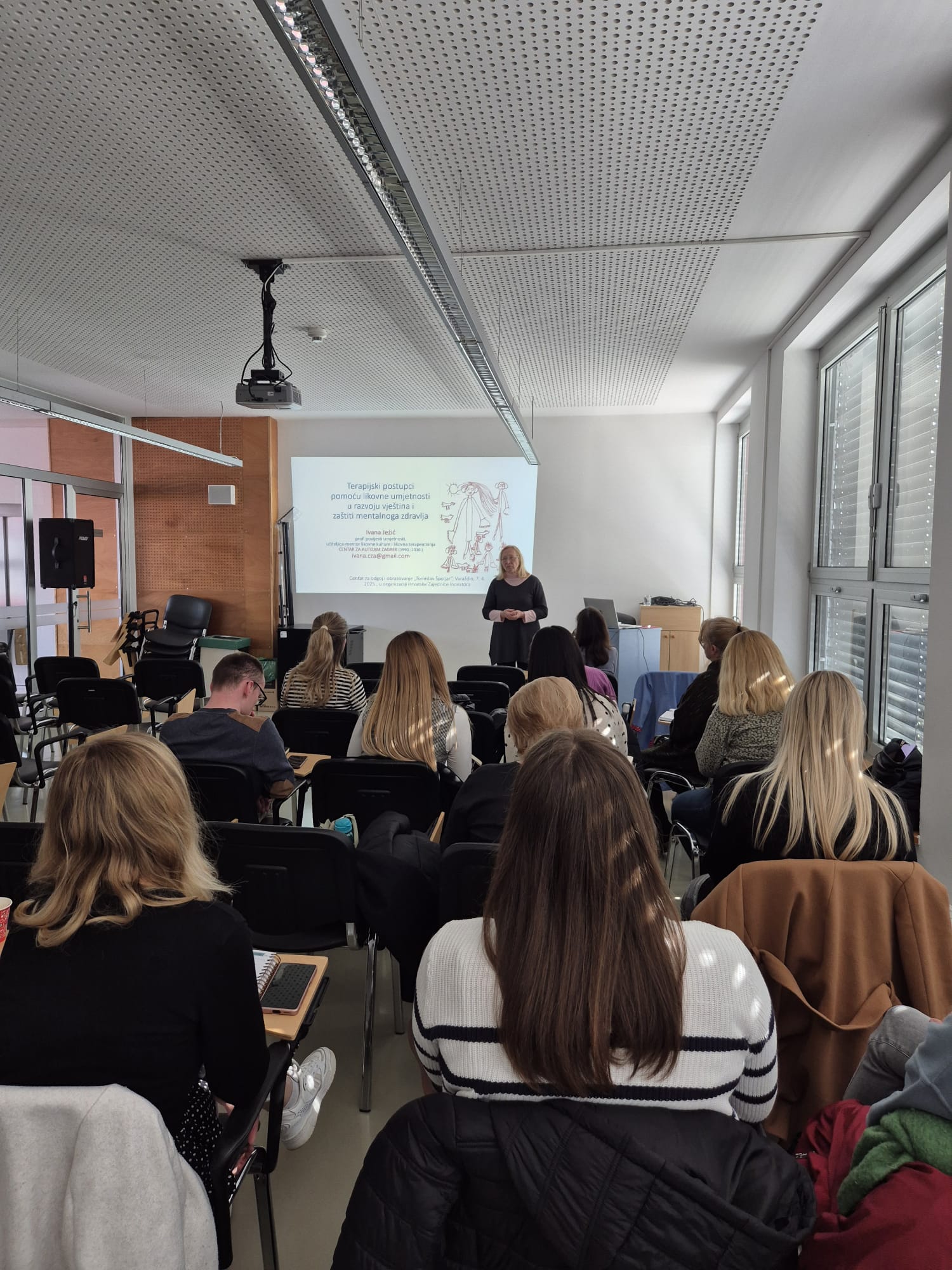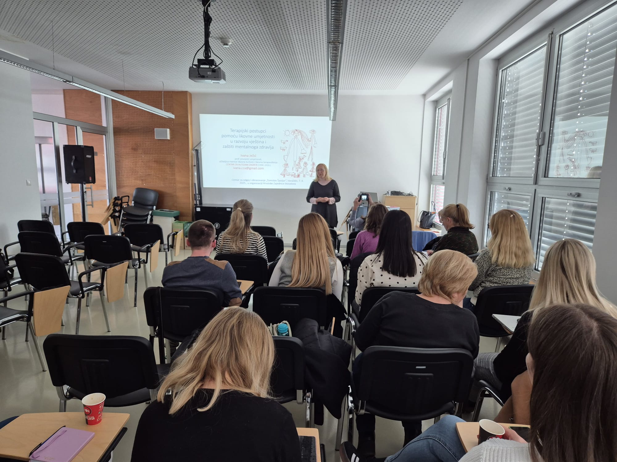 U organizaciji Hrvatske zajednice inovatora i u okviru Programa: Malim korakom do uspjeha održano je predavanje: Terapijski postupci s pomoću likovne umjetnosti u razvoju vještina i zaštiti mentalnog zdravlja. Predavanje je vodila Ivana Ježić, prof. pov. umjetnost i likovna terapeutkinja i edukatorica . Predavanje je održano 7. travnja 2025. u Centru za odgoj i obrazovanje „Tomislav Špoljar“ u Varaždinu, a slušači su bili na predstavnici Županijskog stručnog vijeća edukacijskih rehabilitatora.