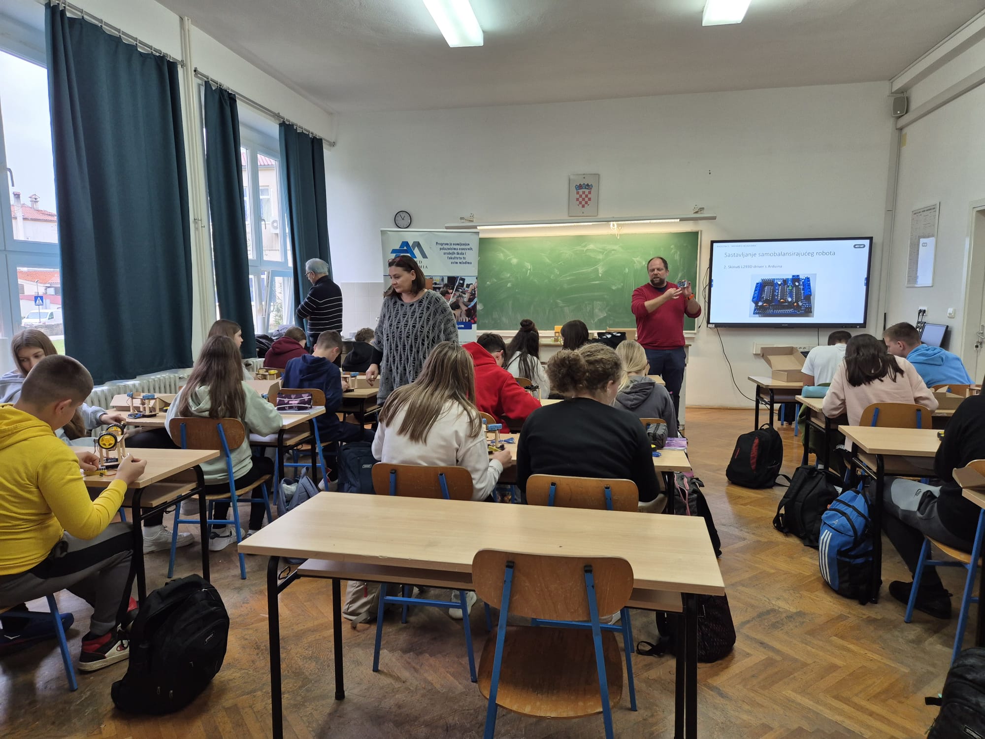Kroz radionice je prošlo ukupno 30 učenika koji su s pažnjom popratili uvodni dio predavača i nakon dobivenog seta materijala za izradu Samobalansirajućeg robota započeli su spajanje svoga robota.