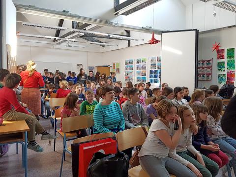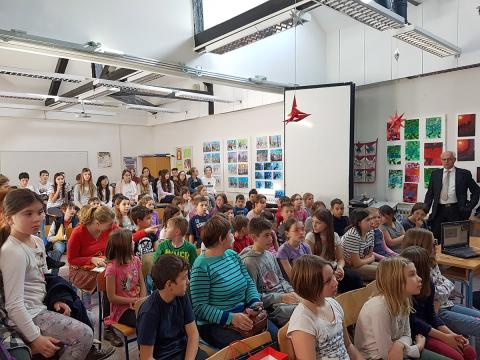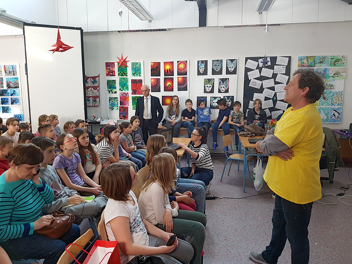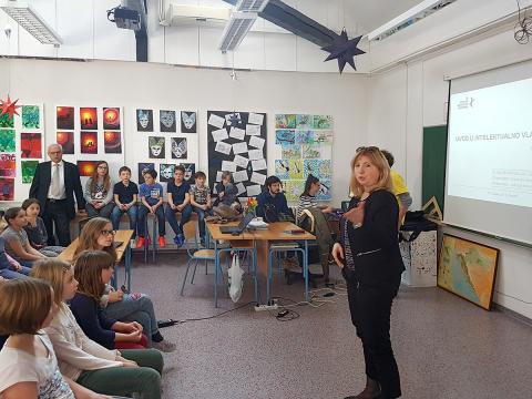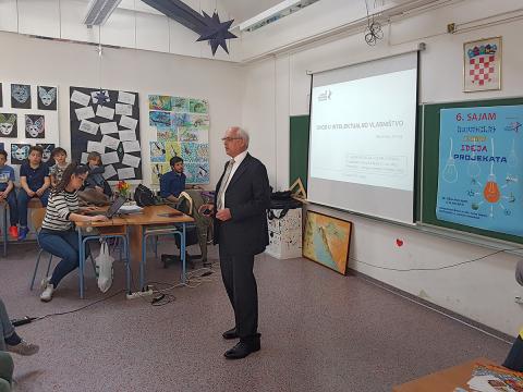Uz veliki odaziv učenika od četvrtog do osmog razreda osnovne škole predstavnik Udruge inovatora Hrvatske Rene Kajp održao je predavanje na temu: Osnove intelektualnog vlasništva.