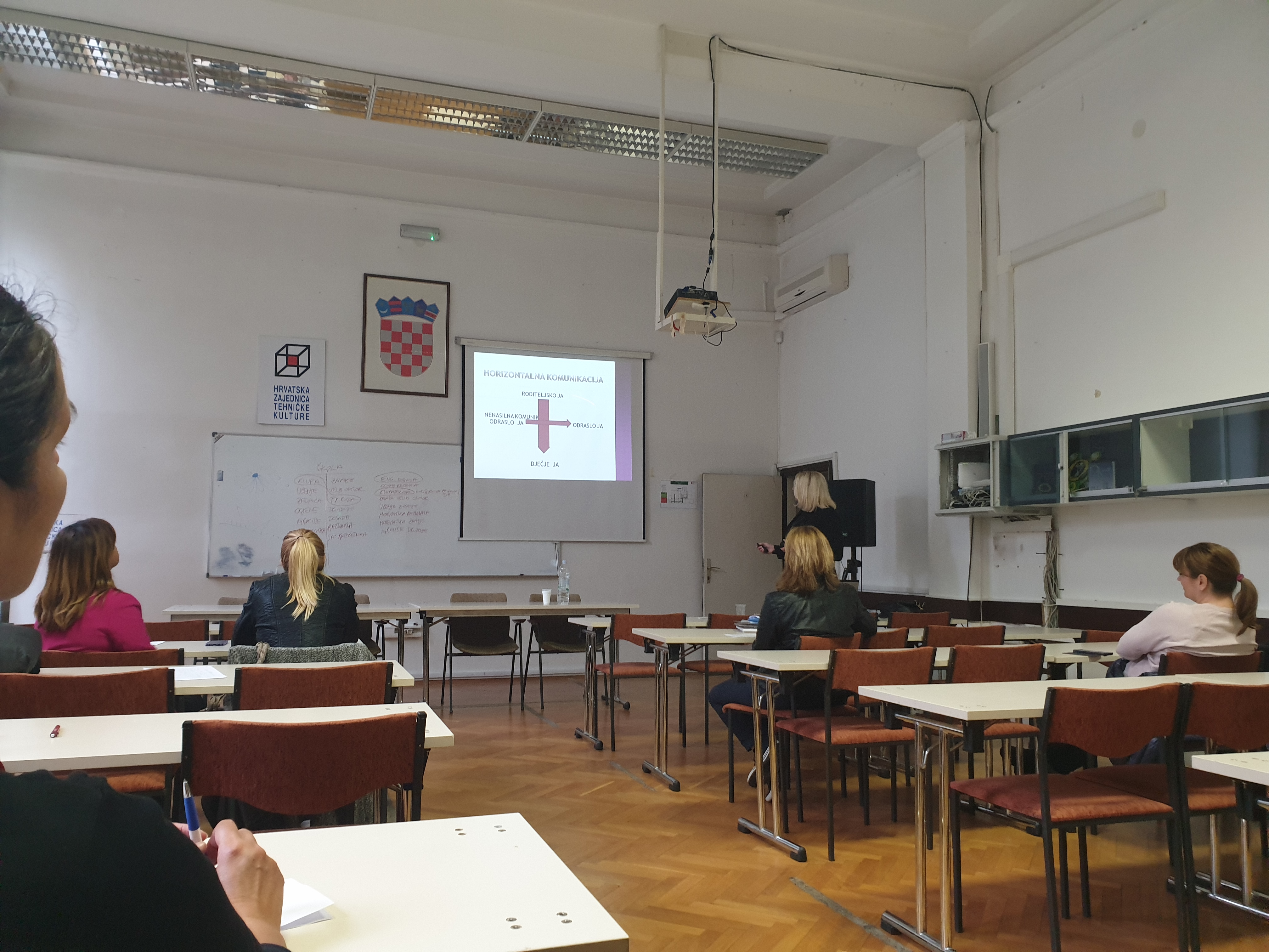 Edukatorica je polaznicima radionice objasnila kako učinkovito komunicirati i prezentirati vlastite ideje. Svaki pojedinac doživljava svijet preko osjetila, ali ne igraju sva osjetila jednako bitnu ulogu. Postoje vizualni tipovi, čije je primarno osjetilo vid, auditivni tipovi koji se oslanjaju na sluh i kinestetski tipovi koji informacije unose dodirom i uče kroz iskustvo. Kako bismo efektivno prezentirali svoje ideje, moramo na pravilan način pristupiti sugovornicima, odnosno kroz pravo osjetilo. To se može prepoznati po verbalnoj i neverbalnoj komunikaciji. Neverbalna komunikacija prenosi puno više informacija koje podsvjesno uočavamo. Riječi koje govorimo tvore samo 7% komunikacije. Ton glasa zauzima 38%, a držanje tijela čak 55%. Ako uspijemo neverbalnom komunikacijom doprijeti do sugovornika, uspjet ćemo i uspostaviti verbalnu komunikaciju.