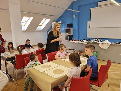 Djeca su ukrašavala pripremljene tekstilne podmetače za jelo tehnikom visokog tiska, s naglaskom na razvijanje osjećaja sigurnosti i samostalnosti u radu. Kroz ovaj kreativni proces su ponovili/naučili i kako se pravilno servira pribor za jelo, te pojmove lijevo i desno. Svako dijete je svoj podmetač mogao zadržati kako bi ga koristio u vrtiću ili kod kuće.