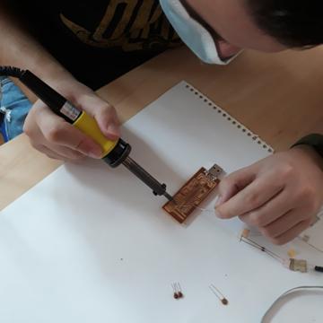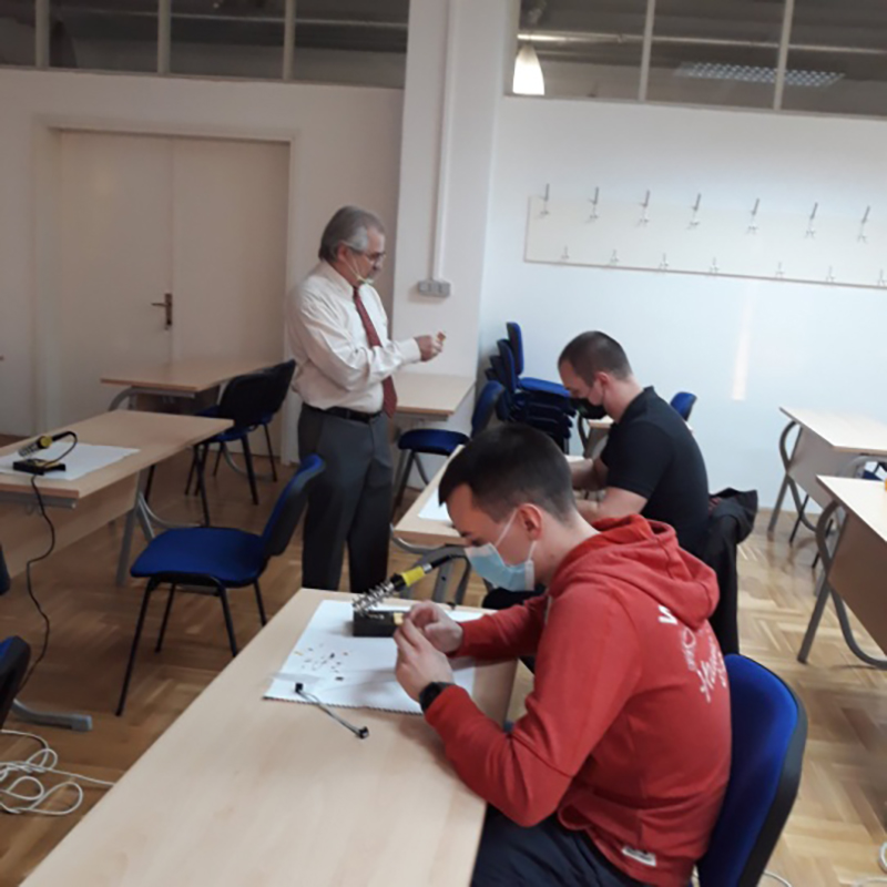 Studenti su u okviru radionice upoznali elemente i dijelove za sastavljanje (lemljenje i spajanje), te uspješno izveli radove. Proveli su provjeru rada programatora. Ovim alatom će se koristiti za programiranje upravljanja mobilnim robotom kojega su izradili na prošloj radionici, te u razvoju novih ideja pri primjeni mikrokontrolera.