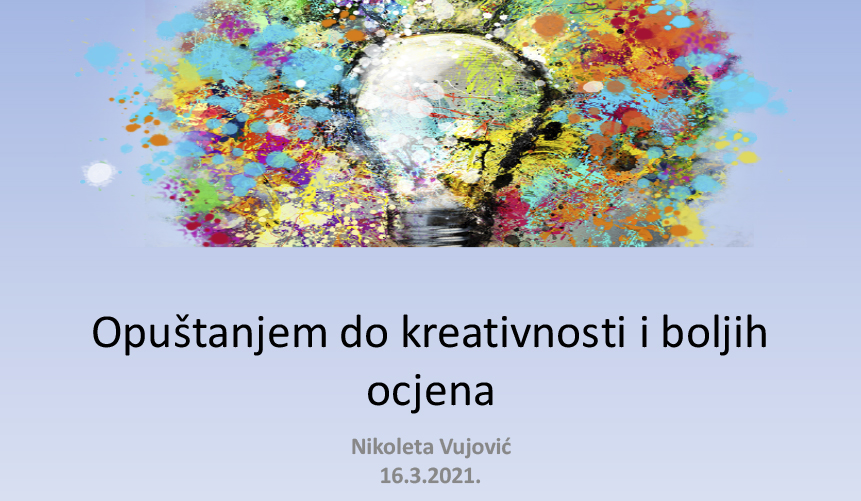 Radionica Opuštanjem do kreativnosti i boljih ocjena je početna radionica koja pokazuje vezu opuštanja i kreativnosti te daje jednostavne vježbe za postizanje rezultata.