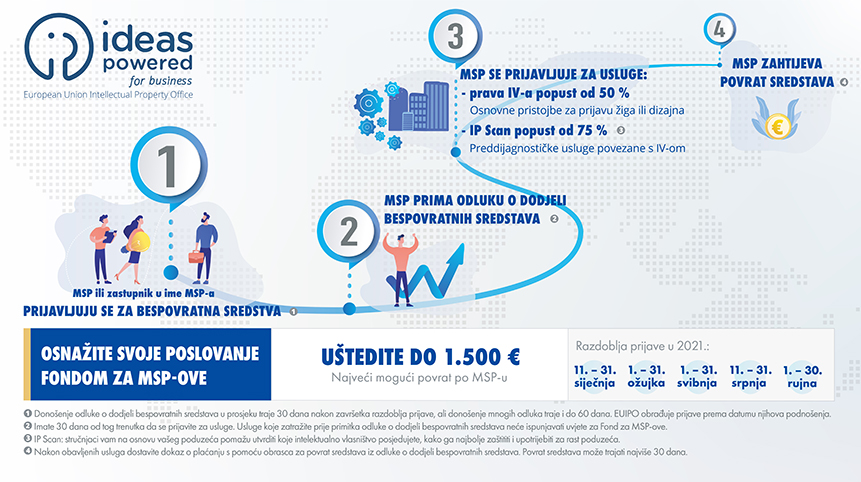 Program „Ideas Powered for Business” Fonda za MSP-ove program je bespovratnih sredstava u iznosu od 20 milijuna eura koji pomaže europskim malim i srednjim poduzećima (MSP-ovima) da pristupe svojim pravima intelektualnog vlasništva (IV).