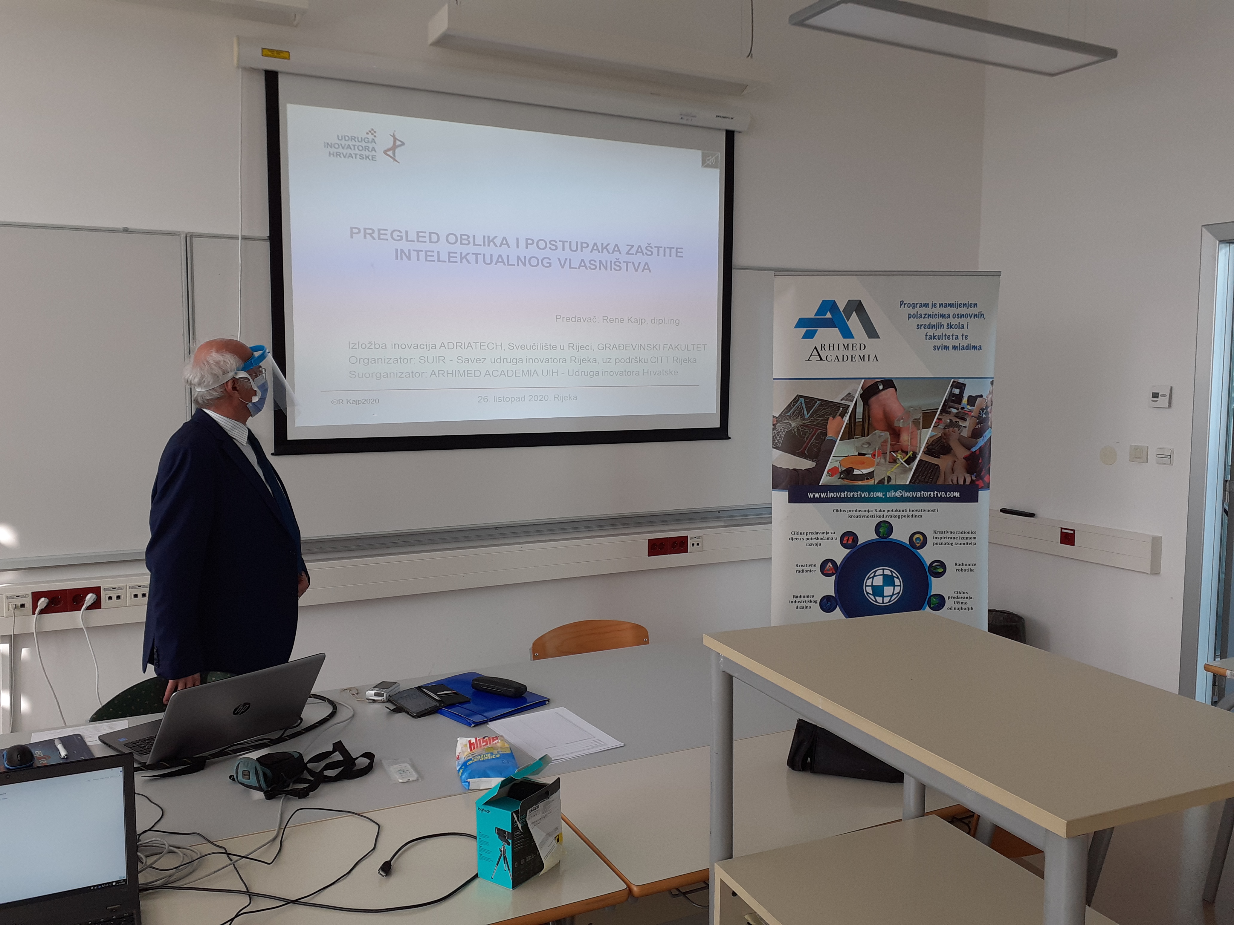 Arhimed academia UIH-a je u sklopu izložbe organizirala predavanje „Pregled oblika i postu-paka zaštite intelektualnog vlasništva“ s naglaskom na zaštitu rezultata znanstveno istraživačkog rada. Predavanje je uz pridržavanje svih mjera i preporuka Stožera civilne zaštite RH održao stručnjak za zaštitu intelektualnog vlasništva gosp. Rene Kajp, dipl.ing., a zainteresirani su predavanje mogli pratiti također i on-line putem platforme za održavanje nastave na web portalu fakulteta.