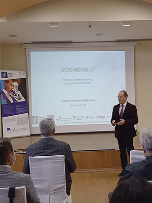 U svom predavanju prof. dr. sc. Miljenko Šimpraga naglasio je važnost i značaj inovacija koje su u razvijenim zemljama i EU-e i svijeta već desetljećima ključne za konkurentnost u globalnom gospodarstvu jer osiguravaju održivi rast i veću zaposlenost. Inovacije pomiču granice znanja, a njihova komercijalizacija postaje ključni izvor dinamičnog poboljšavanja produktivnosti za napredna gospodarstva. Istaknuo je da Hrvatska mora postati inovativna, konkurentna i prepoznatljiva.