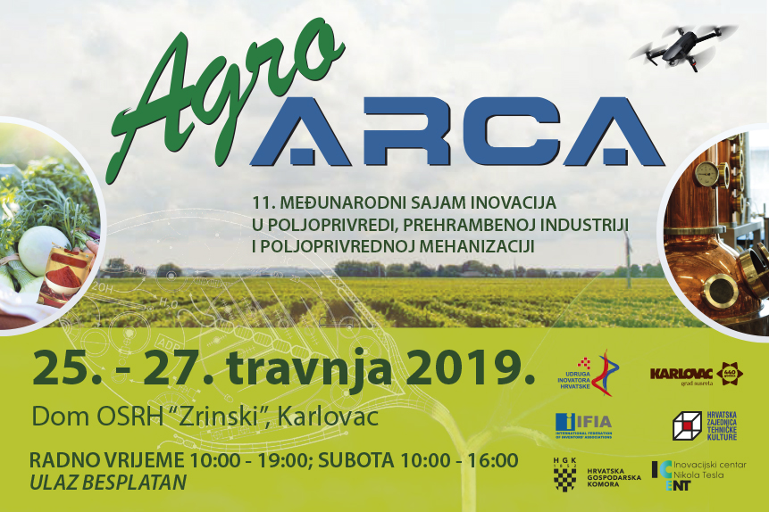 prijave za 11. međunarodni sajam inovacija u poljoprivredi, prehrambenoj industriji i poljoprivrednoj mehanizaciji AGRO ARCA 2019 koji će se održati od 25. do 27. travnja 2019. u Domu OSRH "Zrinski " u Karlovcu traju još 8 dana; do 11. travnja 2019. godine.