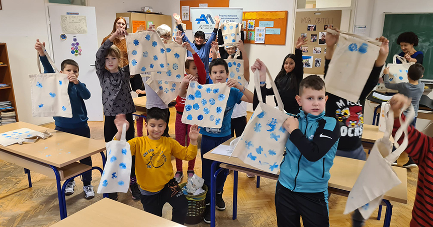 Bezbroj različitih pahuljica ukrasile su platnene torbe i svaka mama će na dar dobiti unikatni rad svoga djeteta za poklon za blagdane. Učenici su bili ponosni na svoje uratke i svoja mala umjetnička djela.