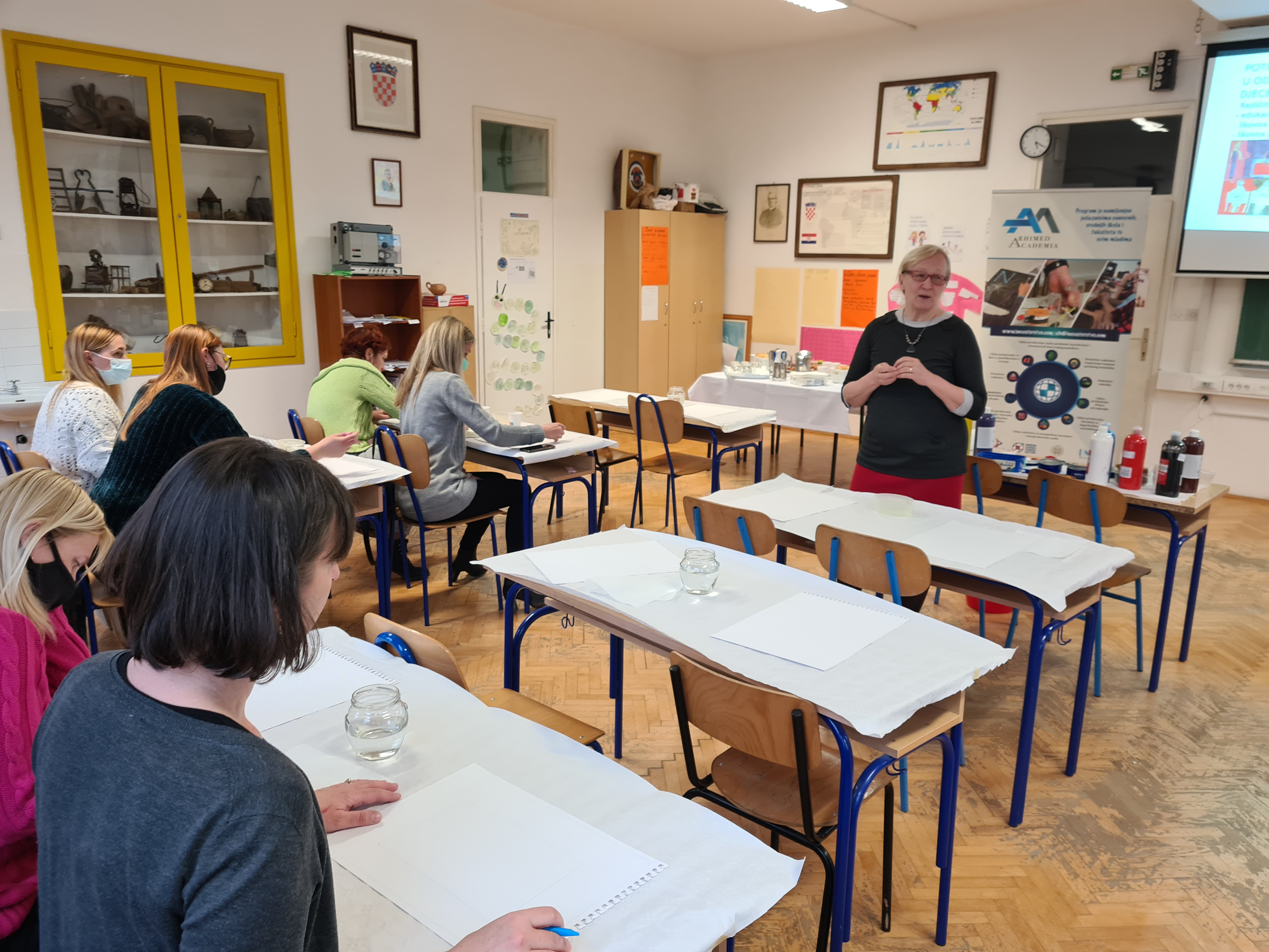 Učitelji su zainteresirao sudjelovali u interaktivnom predavanju uz prikazane brojne primjere učeničkih likovnih radova povezanih s iskustvima iz prakse i kreativno sudjelovali u likovnoj radionici te izrazili želju da se nastavi suradnja njihove škole s Udrugom inovatora Hrvatske, a naglasili su i želju da se bolje upoznaju s likovno-terapijskim postupcima i širim mogućnostima njihove primjene u odgoju i obrazovanju učenika.