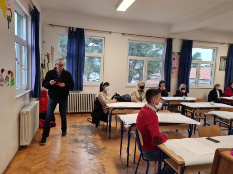 Stručna edukacija usmjerena na različite pristupe i metode u odgoju i obrazovanju učenika s teškoćama pomoću likovnih aktivnosti, obuhvaćajući edukacijsku-rehabilitaciju, likovnu terapiju i likovnu pedagogiju održana je 16. ožujka 2022. u OŠ Petra Studenca Kanfanar za učiteljice/učitelje osnovne škole (razredne nastave u nižim razredima i predmetne nastave u višim razredima), a sudjelovao je i ravnatelj škole g. Ivor Kuček. Nastavak je to odlične i dugogodišnje suradnje sa školom i Društvom inovatora Kanfanar - Rovinj.