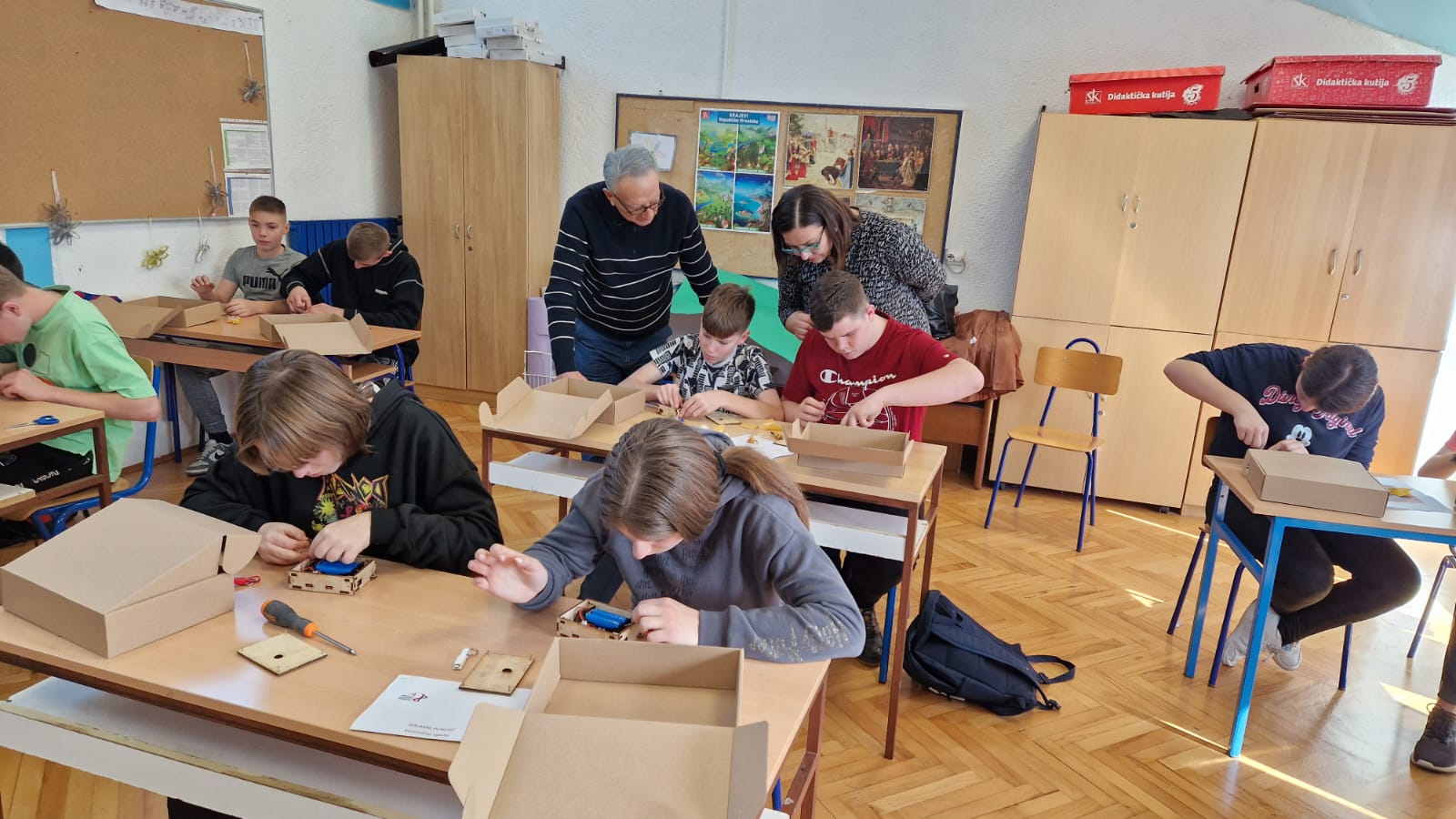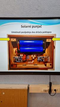 Kroz uvodno predavanje o obnovljivim izvorima energije, njihovim prednostima i manama predavač je uveo učenike u izradu Solarnog punjača. Napomenuo je kako je punjač višenamjenski uređaj koji objedinjuje funkcije baterijske banke, svjetiljke i solarnog punjača. Nakon predavanja podijelio im je kutije s dijelovima Solarnog punjača kojeg su prema uputama predavača kroz 2 školska sata i uspješno napravili. Kućište punjača je napravljeno od šperploče, ekološki prihvatljivog materijala. Gotovi uradak učenici su mogli ponijeti doma i predloženo im je da kućište ukrase po svojim željama kako bi i tako pokazali svoju kreativnost.