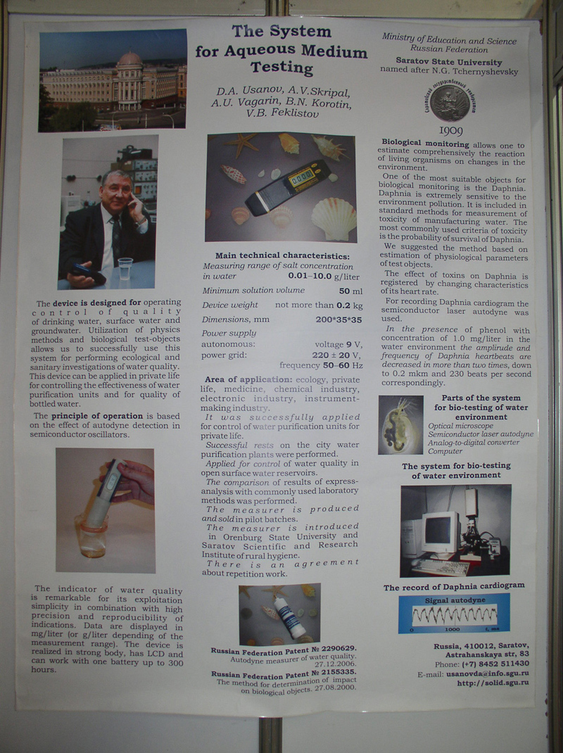 Veliku nagradu 4. međunarodnog sajma inovacija, eko ideja i tehnologija u poljoprivrednoj i prehrambenoj industriji Agro Arca 2011. u Slatini dobili su Dmitry Usanov, Alexander Skripal, Anatoly Vagarin, Boris Korotin, Vladimir Feklistov i njihovi suradnici s Državnog sveučilišta Saratov u Rusiji za kompleks za testiranje vodenog medija. Nagradu je primio Evgueni A. Kainov, zamjenik generalnog direktora Ruske kuće za međunarodnu znanstvenu i tehnološku suradnju.