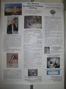 Sustav za testiranje vodenog medija namijenjen je za kontrolu kakvoće pitke vode, površinskih i podzemnih voda. Sustav se može uspješno koristiti za ekološke i sanitarne pretrage kakvoće vode. Može primjenjivati u svakodnevnom životu za kontrolu učinkovitosti pročišćavanja vode. Biološki monitoring omogućava procjenjivanje reakcije živih organizama na promjene u okolišu. Najpogodnija za biološki monitoring je vodena buha, izuzetno osjetljiva na zagađenje okoliša. Vjerojatnost preživljavanja vodene buhe najčešći je kriterij za mjerenje toksičnosti, a učinak toksičnosti mjeri se osobinama otkucaja srca tog organizma. Način rada analizatora temelji se na učinku autodinske detekcije u poluvodičkim oscilatorima.