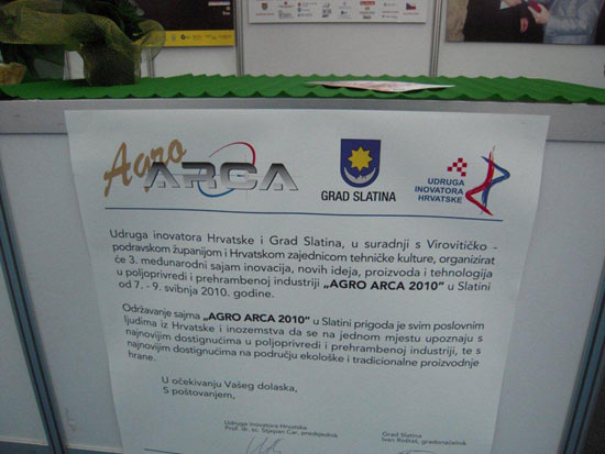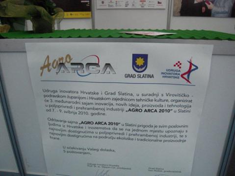 Prvu najavu i promociju AGRO ARCE 2010. 3. međunarodnog sajma inovacija, novih ideja, proizvoda i tehnologija u poljoprivredi i prehrambenoj industriji Udruga inovatora Hrvatske i Grad Slatina održali su tijekom trajanja 15. međunarodnog sajma gospodarstva, obrtništva i poljoprivrede u Virovitici - Viroexpo. Da promoviramo sajam koji ima budućnost potvrdila je i predsjednica Vlade Jadranka Kosor koja je u svom govoru prigodom otvaranja sajma Viroexpo rekla da ju veseli činjenica da izlagači pokazuju svoju pamet, mudrost i znanje i da Hrvatska unatoč teškim vremenima ima snage za gospodarske promjene.